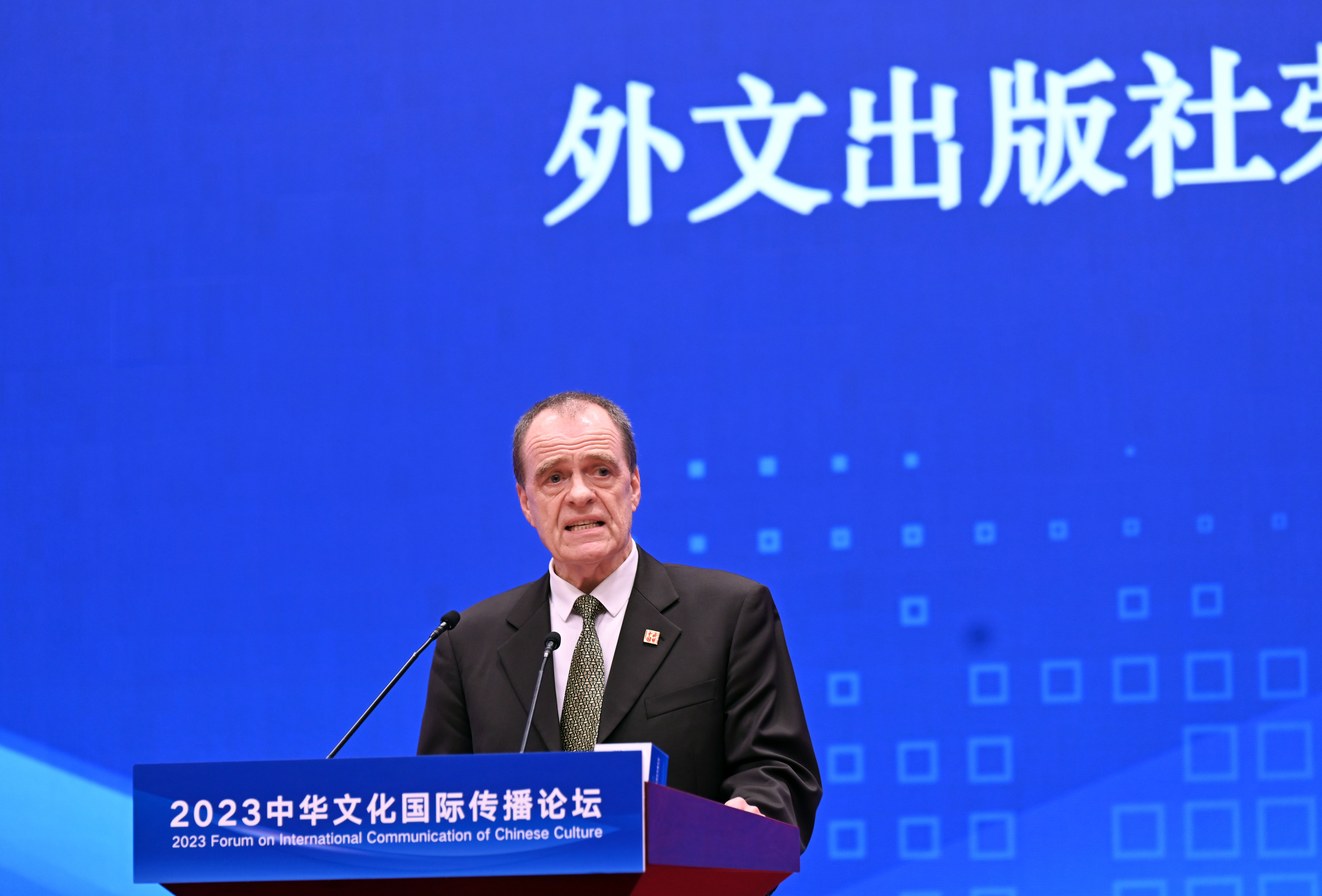 9月22日,2023中华文化国际传播论坛在北京举行。本届论坛主题为“积极践行全球文明倡议 共同推动人类文明发展进步”。外文出版社荣誉英文主编大卫·弗格森在论坛上发言。新华社记者金良快摄