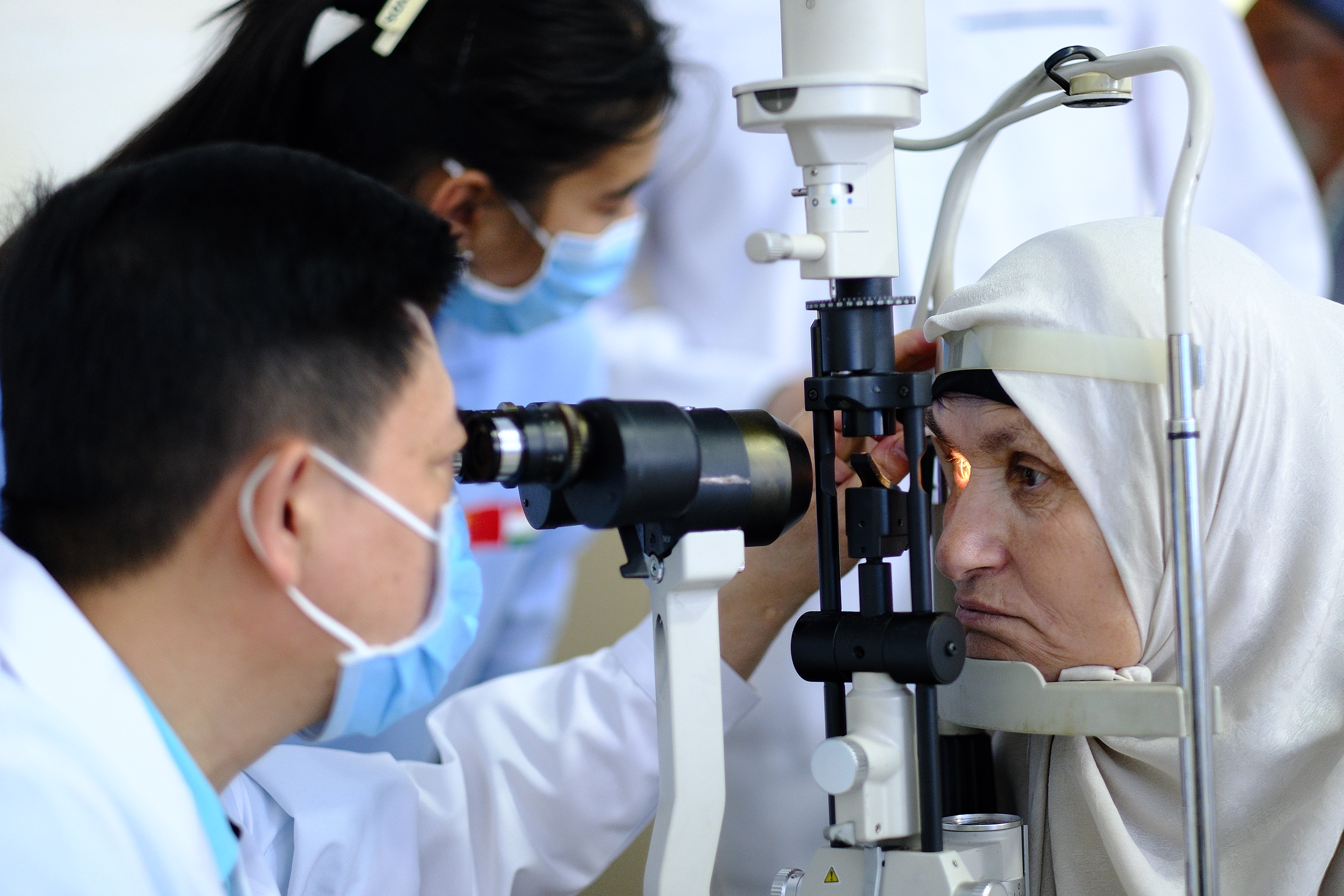 “谢谢医生,我希望能见到光明。”手术前,赛义多夫的母亲轻声祈祷。手术很成功,揭开纱布那一刻,老人露出了久违的笑容。