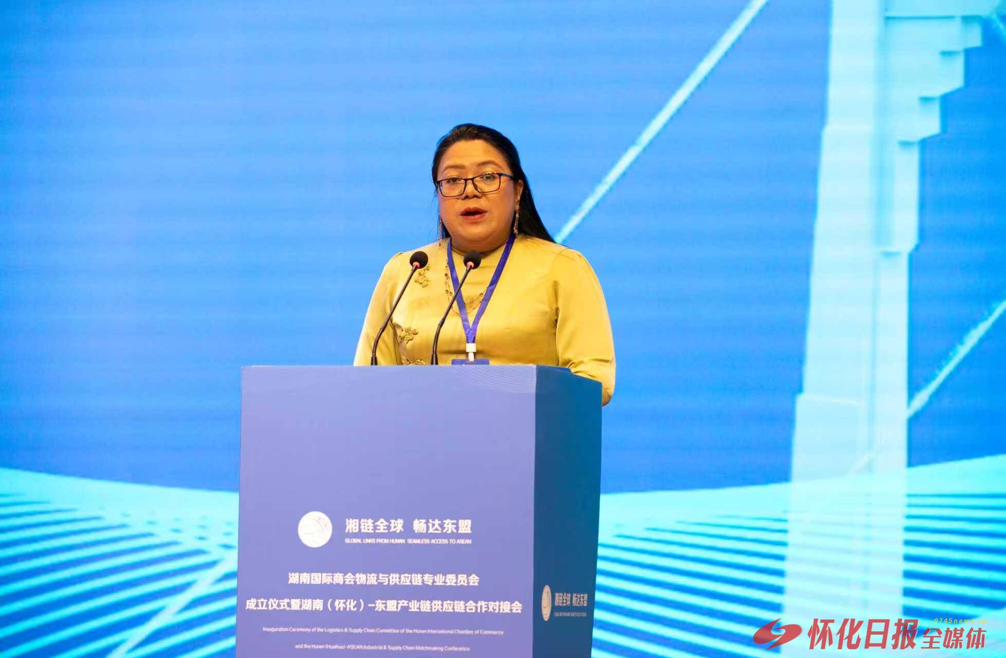 凯素林在致辞中说,怀化是东盟产品进入中国中部市场的重要物流枢纽,东盟与怀化在提升物流与供应链合作方面潜力巨大。怀化国际陆港是连接怀化与缅甸皎漂港、仰光港的跨境快运通道的组成部分,为缅甸与怀化进行更多贸易往来提供了机会。本次对接会将为区域经贸合作与产业链供应链融合注入新动力,搭建企业沟通协作平台,共同开创互利共赢的美好未来。欢迎更多中国投资者赴缅甸探索商机,享受投资优惠政策,在农产品加工、绿色能源等方面寻求合作。