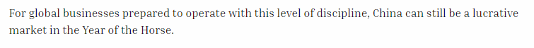 文章认为,2026年在中国市场胜出的企业,将是那些能够构建韧性供应链、打造差异化优势、并善用中国创新生态的企业。对于具备这种战略定力的全球企业而言,农历马年的中国仍将是一片充满机遇的沃土。