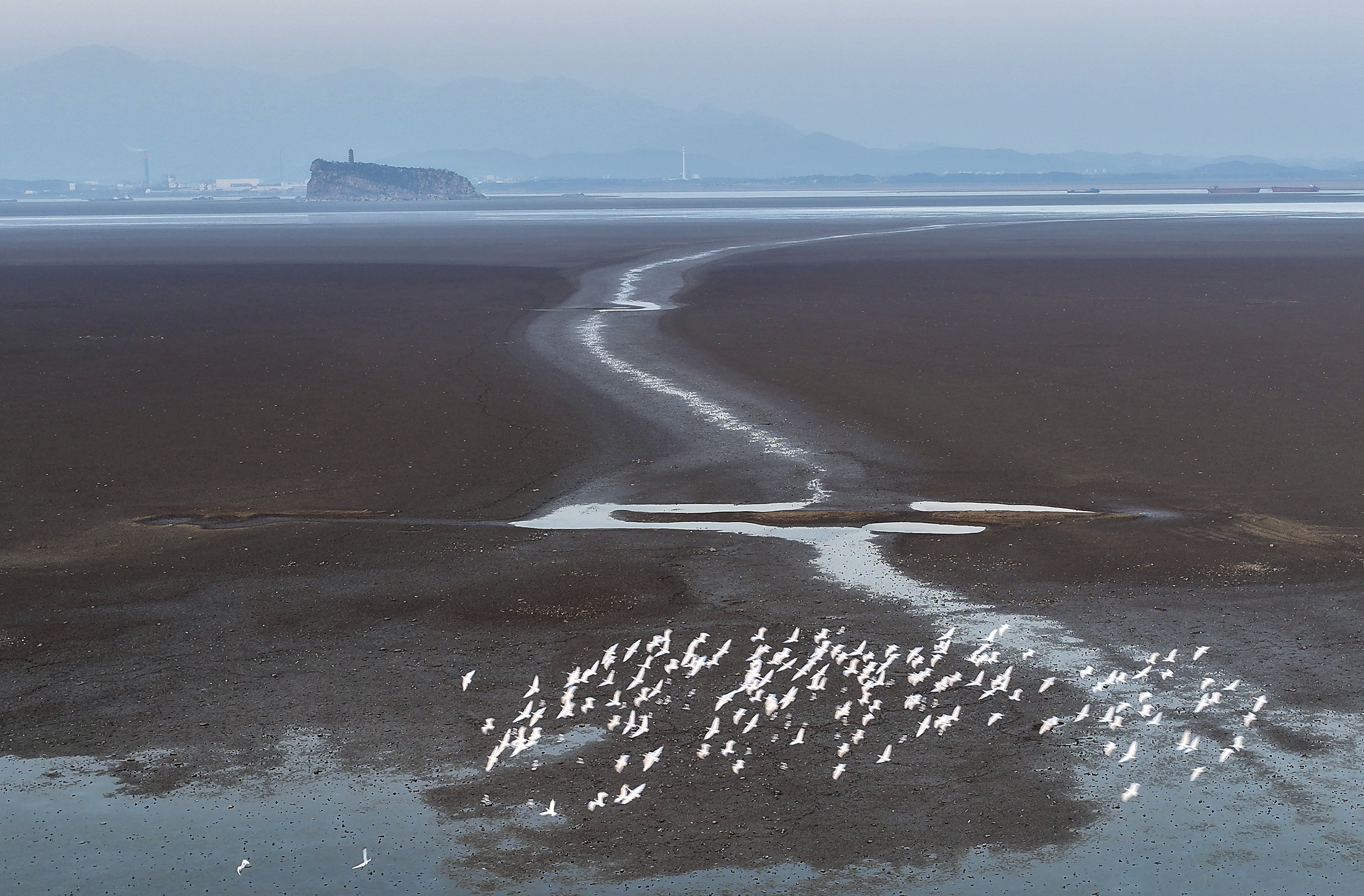 位于中国江西的鄱阳湖,是长江的重要通江湖泊。每到丰水季节,湖面烟波浩渺、水天一色;枯水期则显露出广阔湿地和蜿蜒水道,形成独特的季节性湖泊景观。这里是东亚—澳大利西亚候鸟迁飞路线上的关键驿站,每年冬季,大批候鸟飞抵这里越冬。湖区的湿地、浅滩和草洲构成庞大的生态系统,也滋养着周边数以千万计的人口。