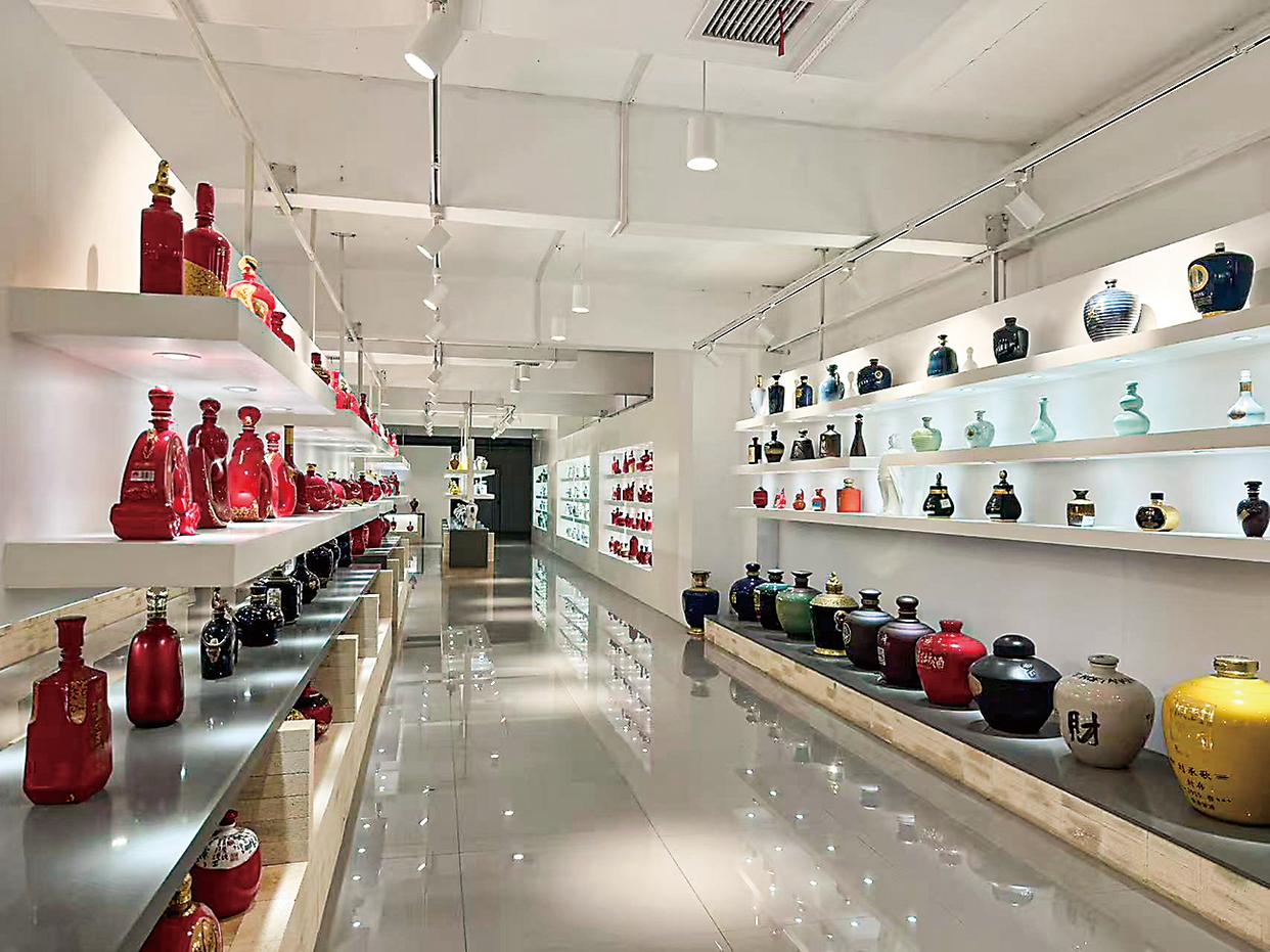 这是孙家湾村湖南银和瓷业展厅展示的陶瓷酒瓶。
