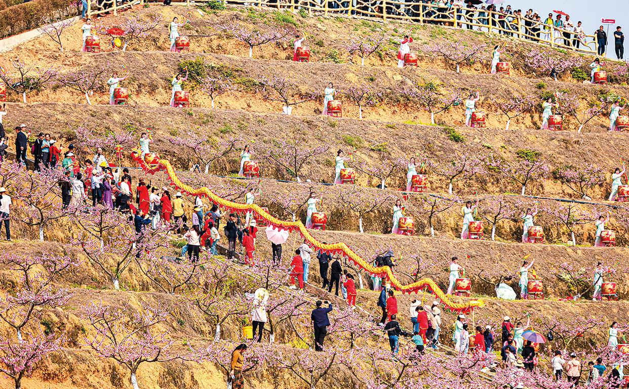 2025年3月30日拍摄的李子塘村第二届黄桃节现场。