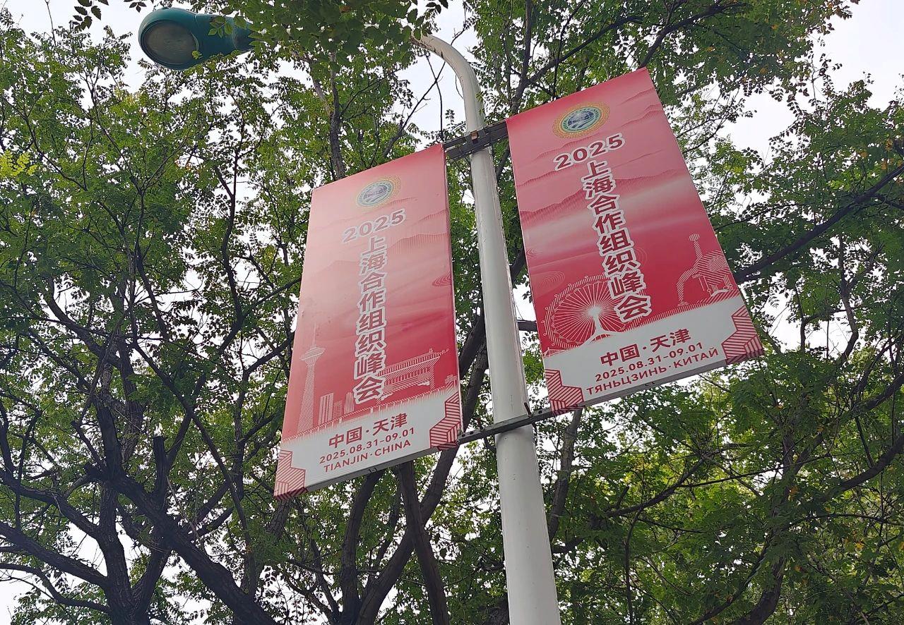 走进天津,会发现体现上合元素的旗帜已经挂满天津主干道路两侧,赏心悦目的花篮也点缀在大街小巷。