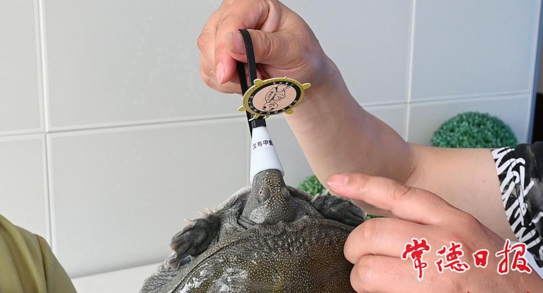 正宗汉寿甲鱼佩戴防伪溯源头套。